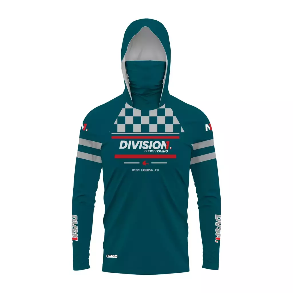 As camisas de confecção esportiva Division1 são feitas de tecidos especiais com proteção 50% UV+, de alto padrão de qualidade e com alto acabamento. O modelo de manga cumprida com capuz e bofe é ideal para a prática da pesca esportiva, proporcionando conforto e proteção solar. A marca preza por um estilo próprio e uma diversidade de cores modernas, permitindo que os clientes escolham a opção que mais combina com seu estilo e preferências. As camisas são produzidas com materiais de alta qualidade, garantindo durabilidade e resistência.